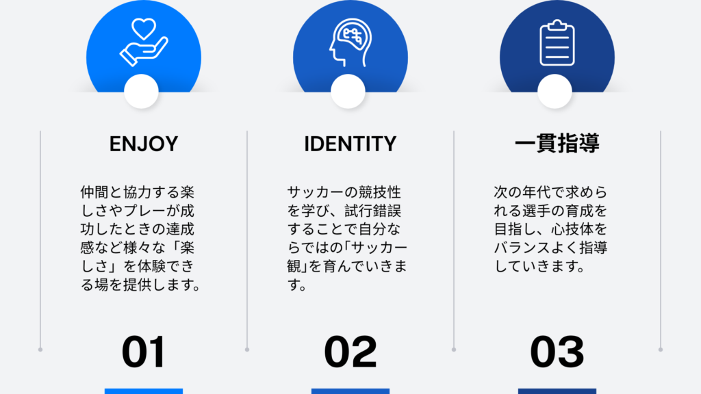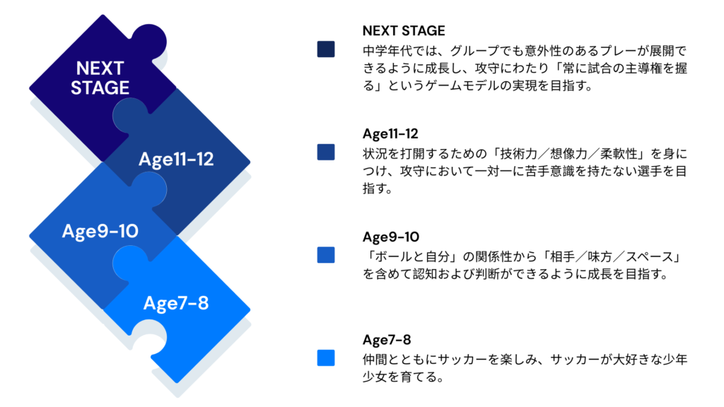 当スクールでは、日本サッカー協会が発信する「Japan's Way」で指針とされている【望まれる選手像】や【プレービジョン】を基に指導を行います。