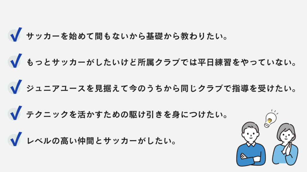 当スクールはチーム登録をしていないのでクラブや少年団に所属しながらどなたでも入会することができます。
